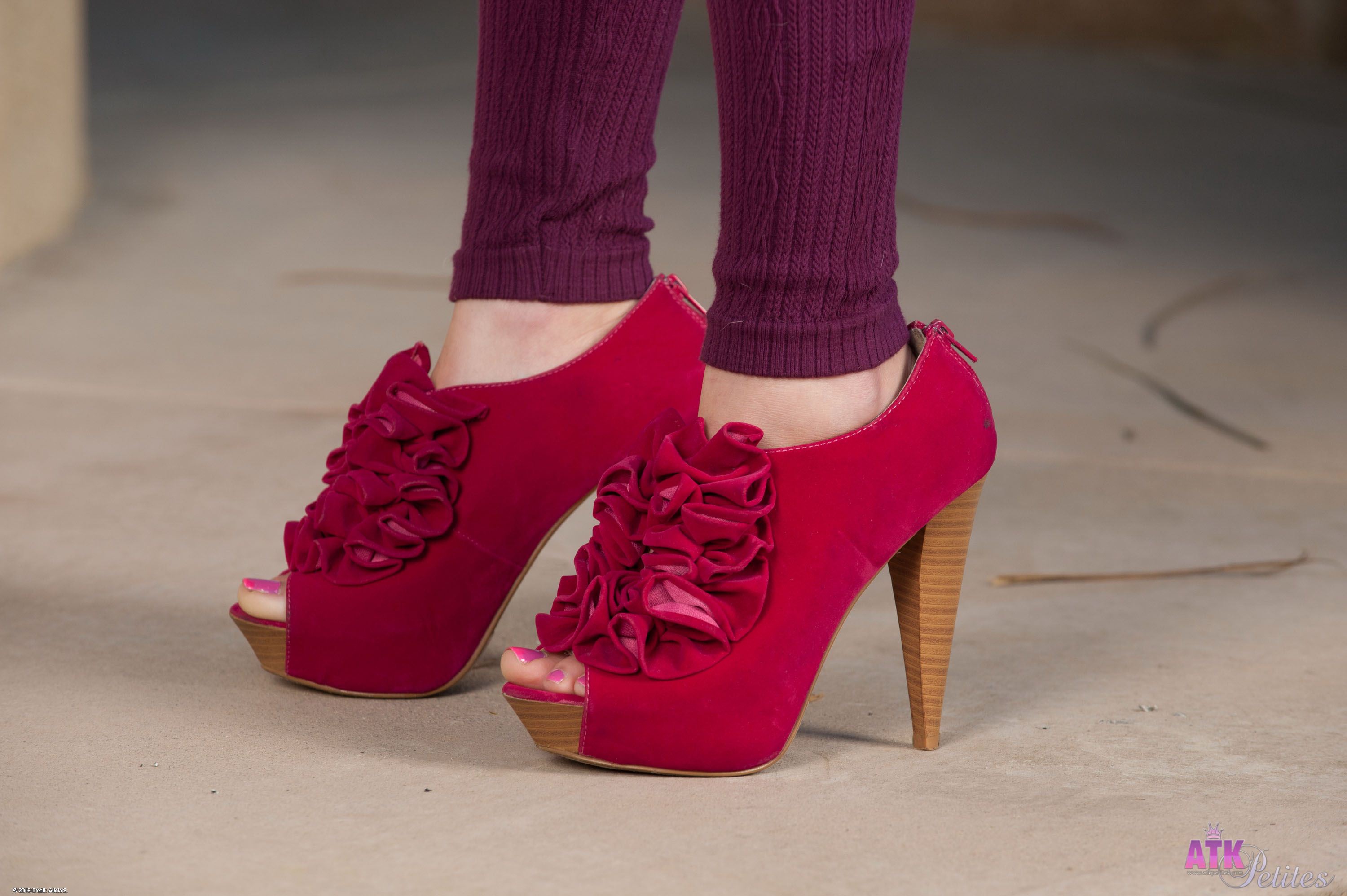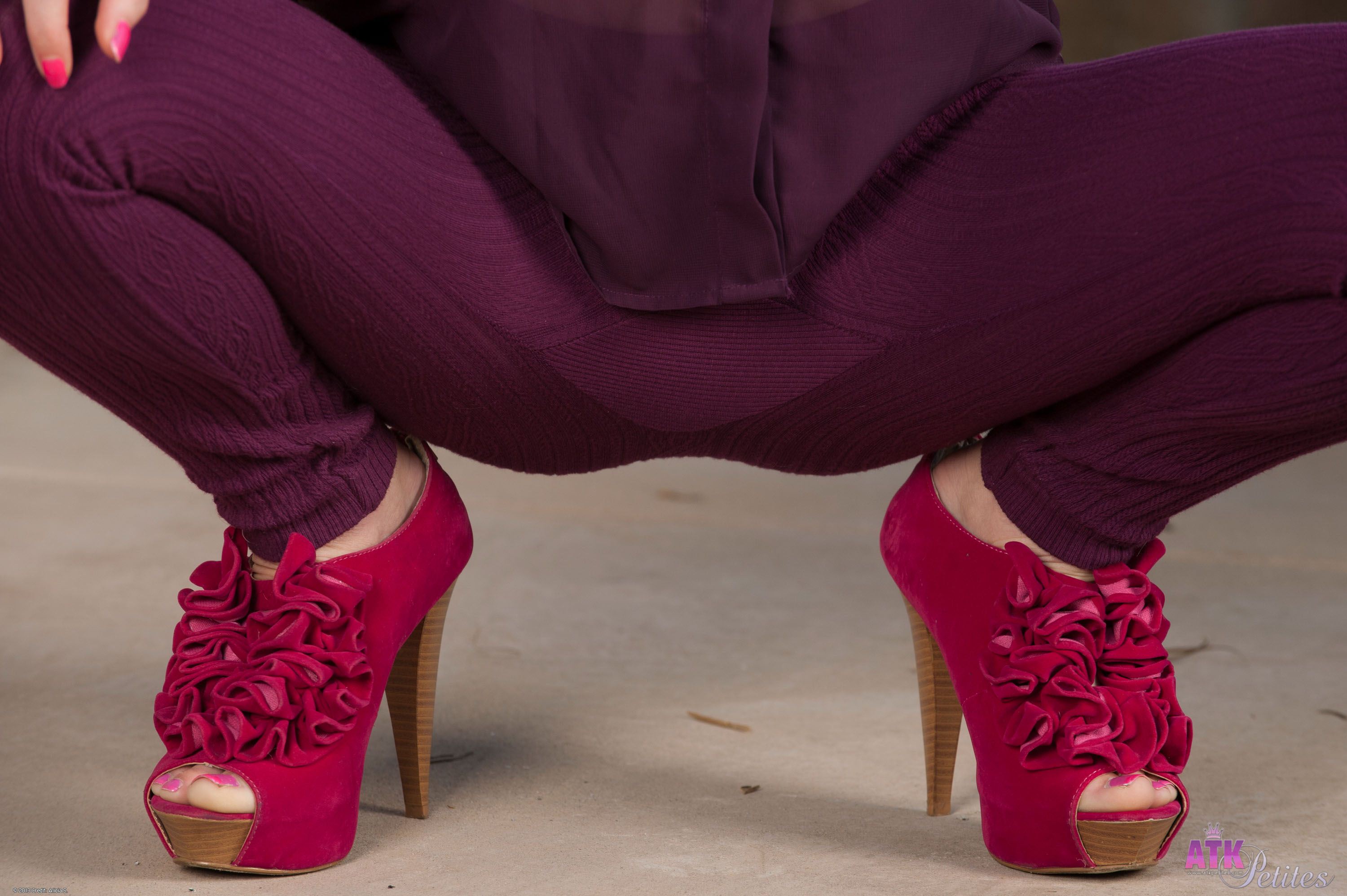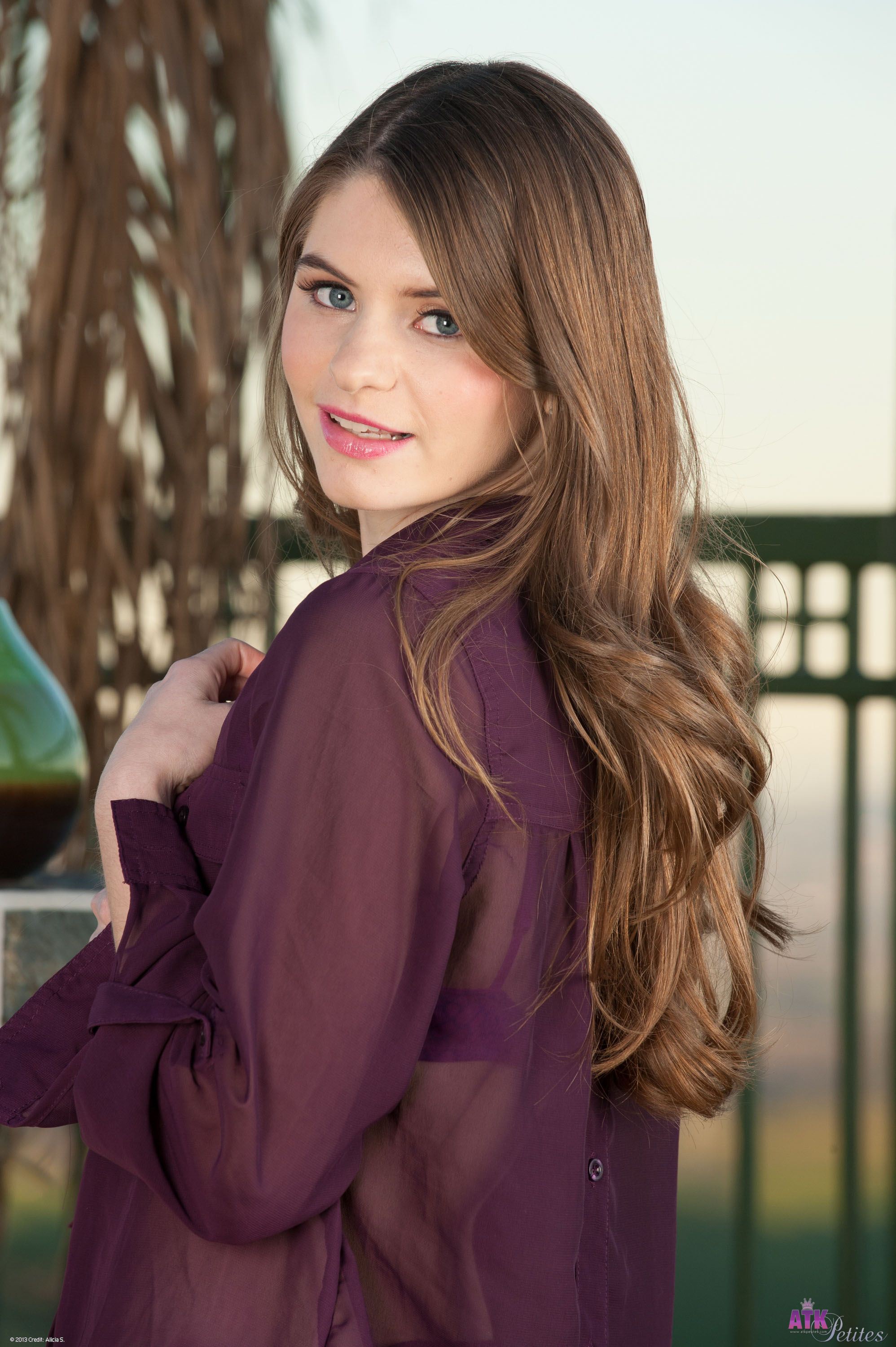 Alice March stripes off her clothes and gets naked against the sun setting in the back drop.
