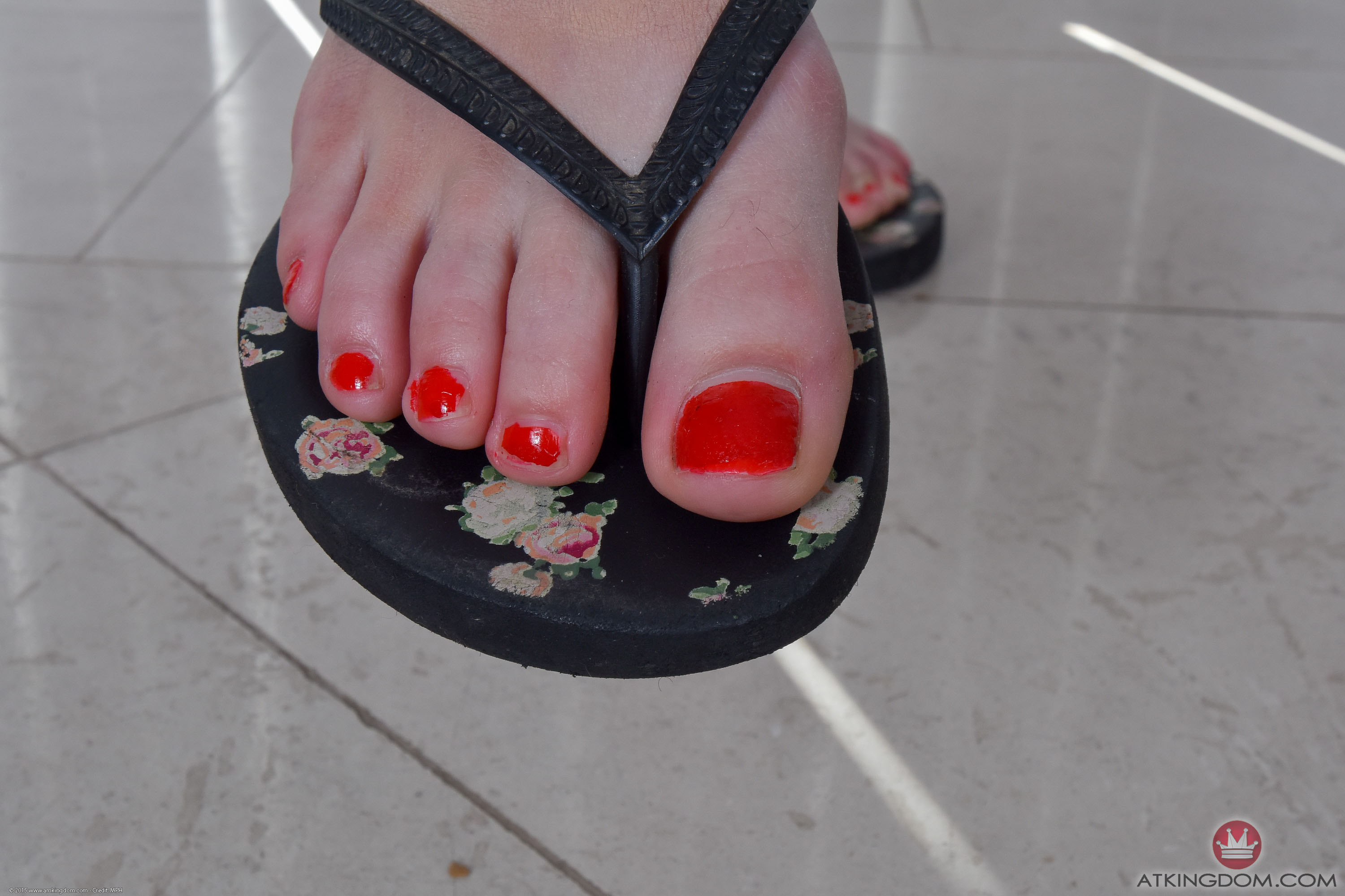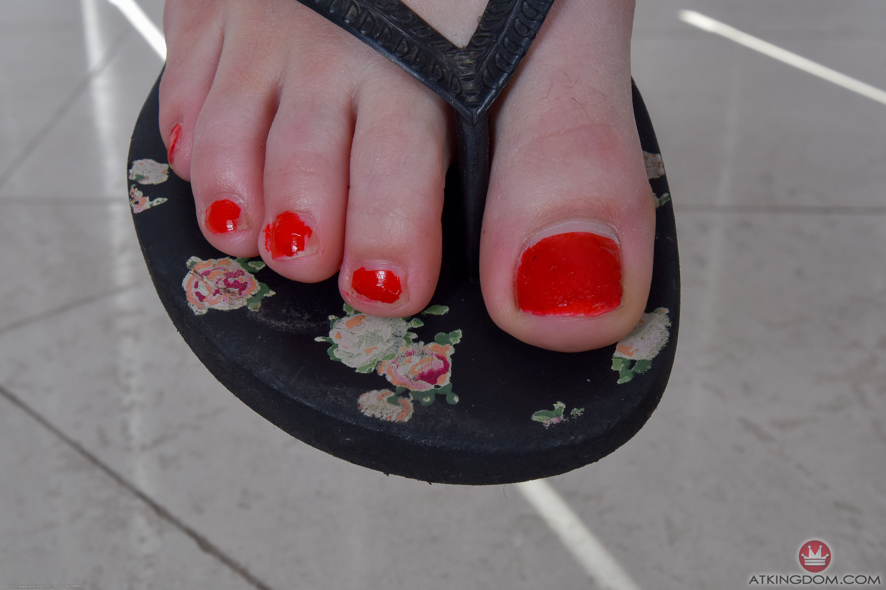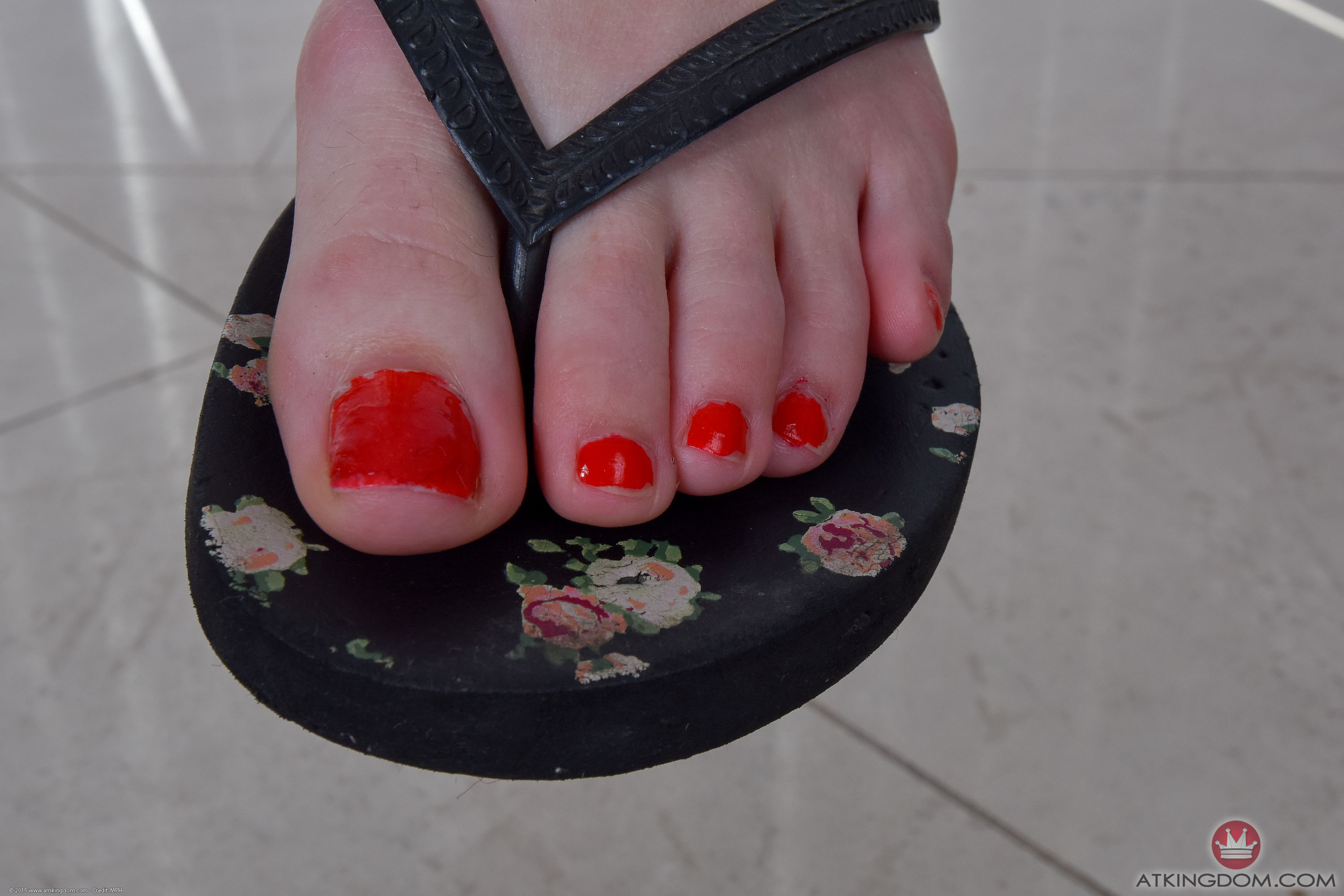 Alice March is always happy when she gets to show off her feet. She's got her toes painted red for the occasion because she knows how hot you find that. You'll love checking out Alice's beautiful soles, and her sweet pussy alongside them.