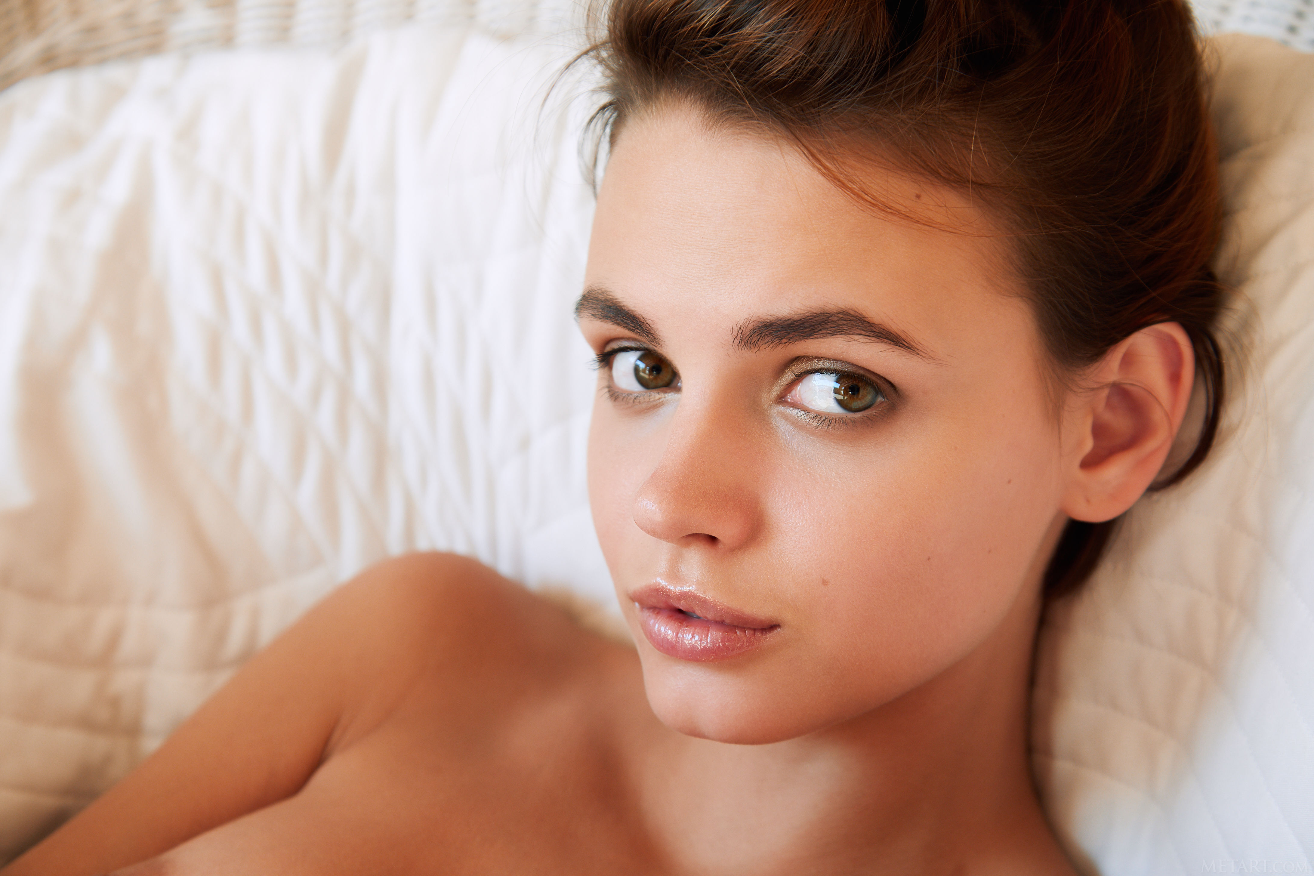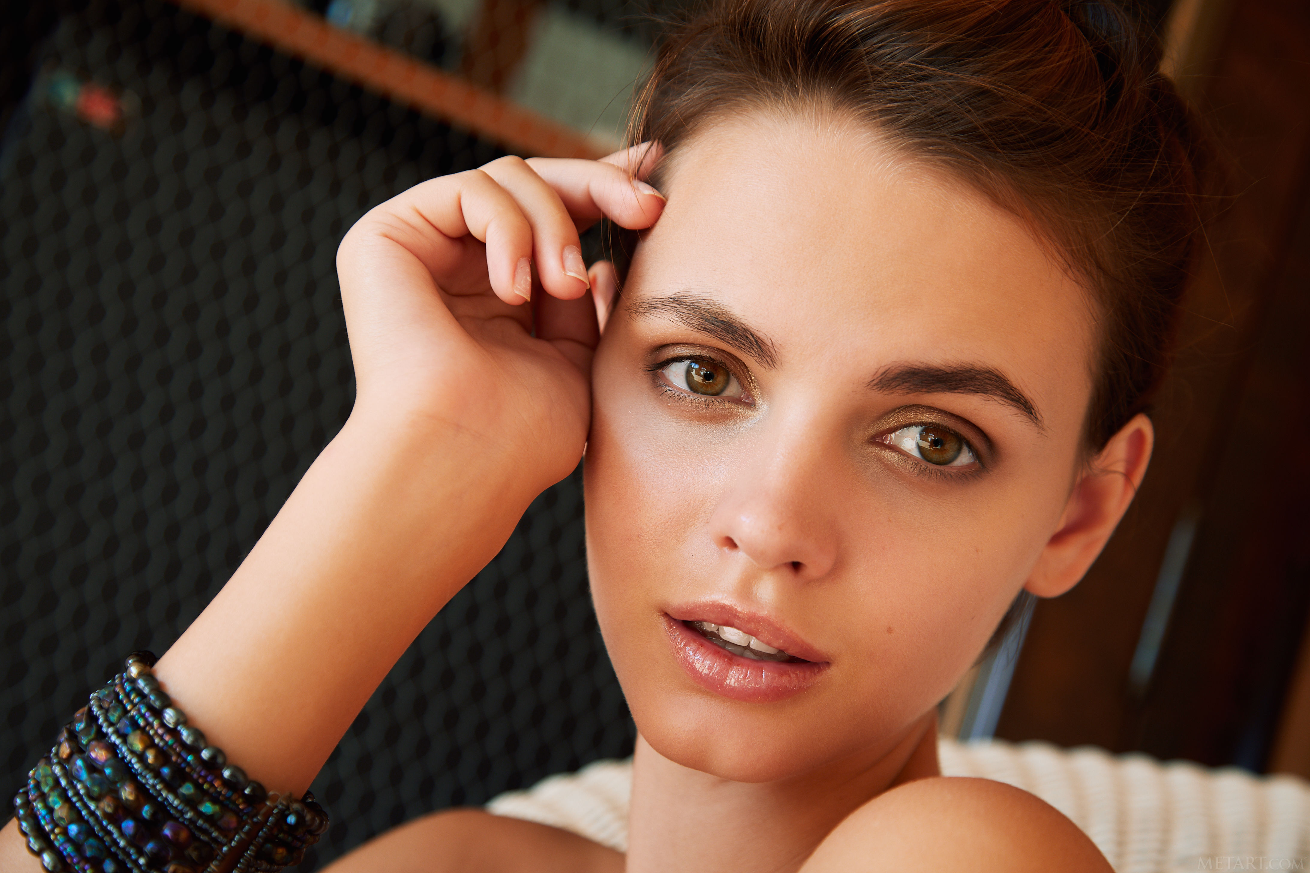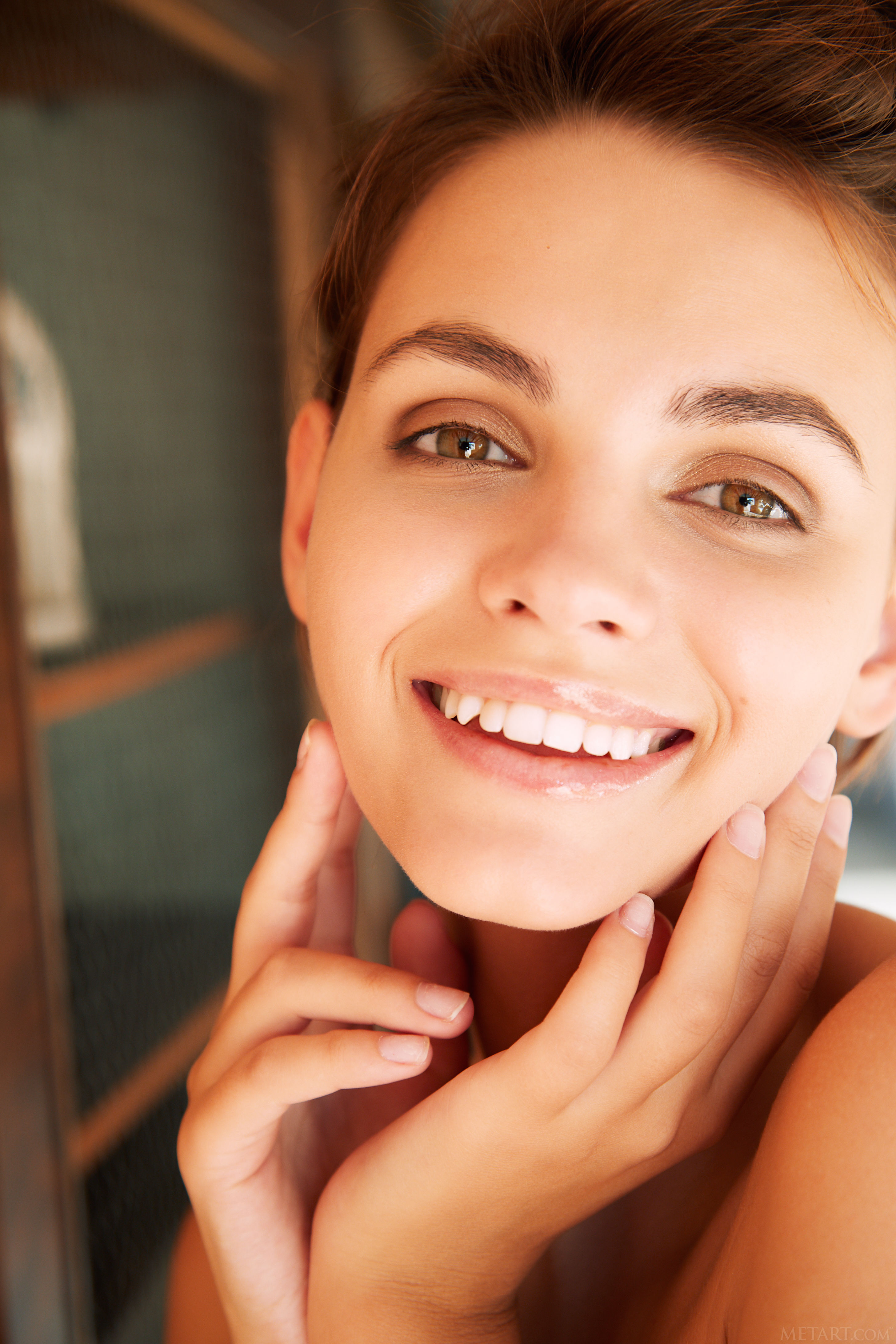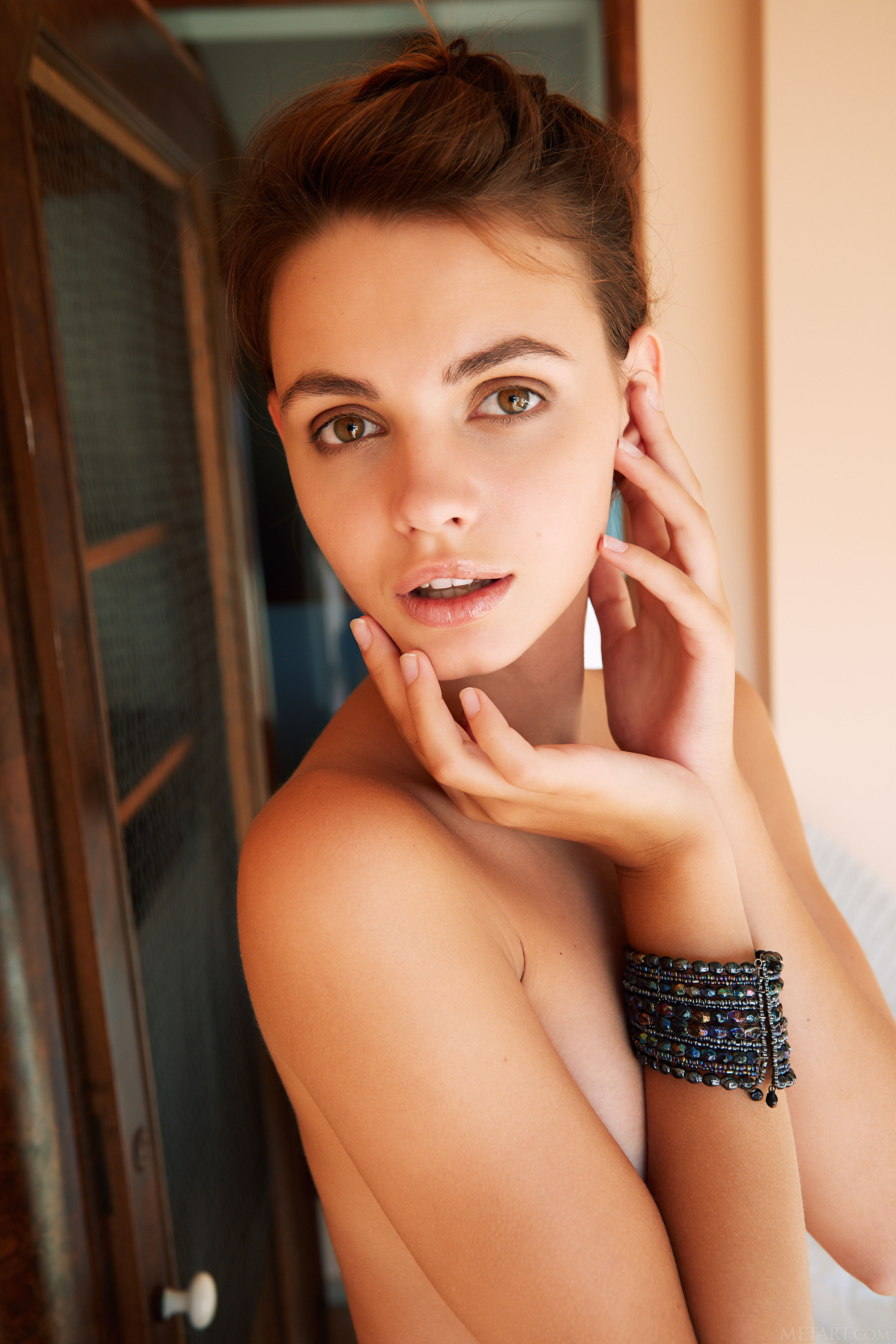 Luscious Lilit A loves lounging around her apartment, naked. The uninhibited Ukrainian brunette sits open legged on a wicker armchair with her pert breasts and shaved pussy on full display. Her cute sexy smile conveys her playful mood as her hands head south and massage the silky smooth flesh of her inner thighs. It’s evident from the beautiful sex kitten’s body language that she’s feeling horny, and she’s unable to sit still, constantly kicking and spreading her lithe legs, and kneeling with her perfect peachy ass held invitingly in the air.