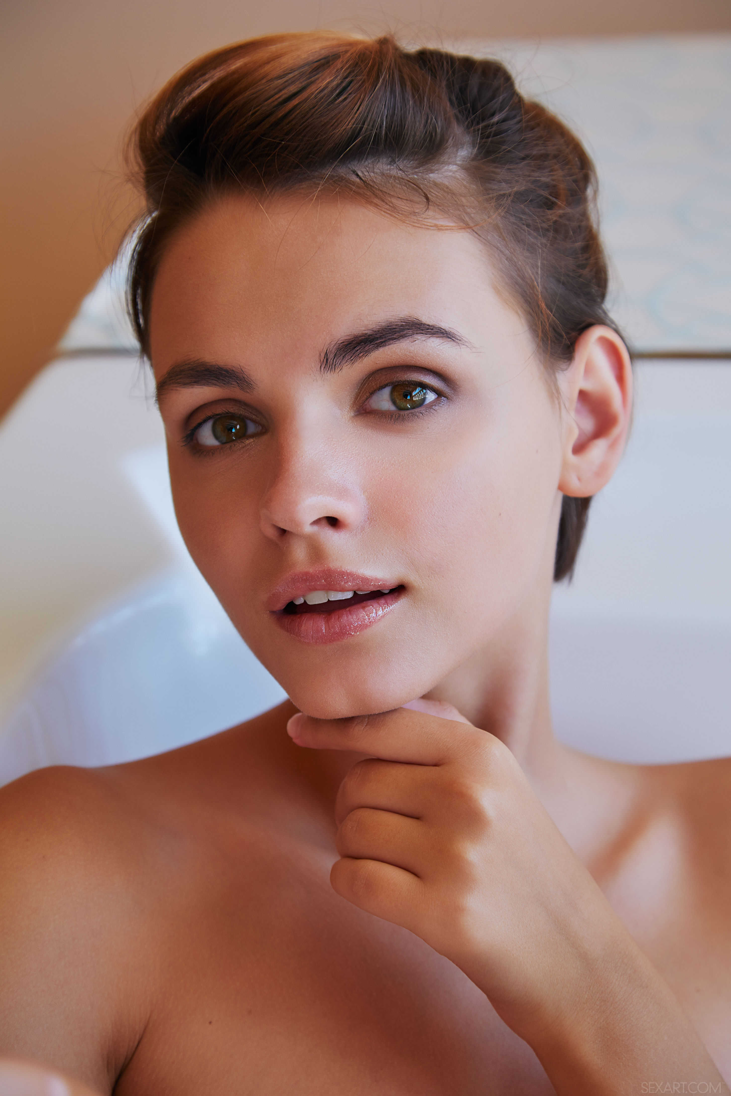 The bathtub is big enough for two and lovely Lilit A looks so lonely in there. She is eager for company, so eager that she makes a display of herself in her skimpy bikini. With sexy eyes on you, she pulls down her top and wriggles out of her tiny panties, climbing into the tub and sitting with her legs spread open, always watching you, willing you to get in with her. She drapes her legs over the sides of the tub, smiles brightly and pulls on her hot pussy, opening herself up to show you just what you're missing...