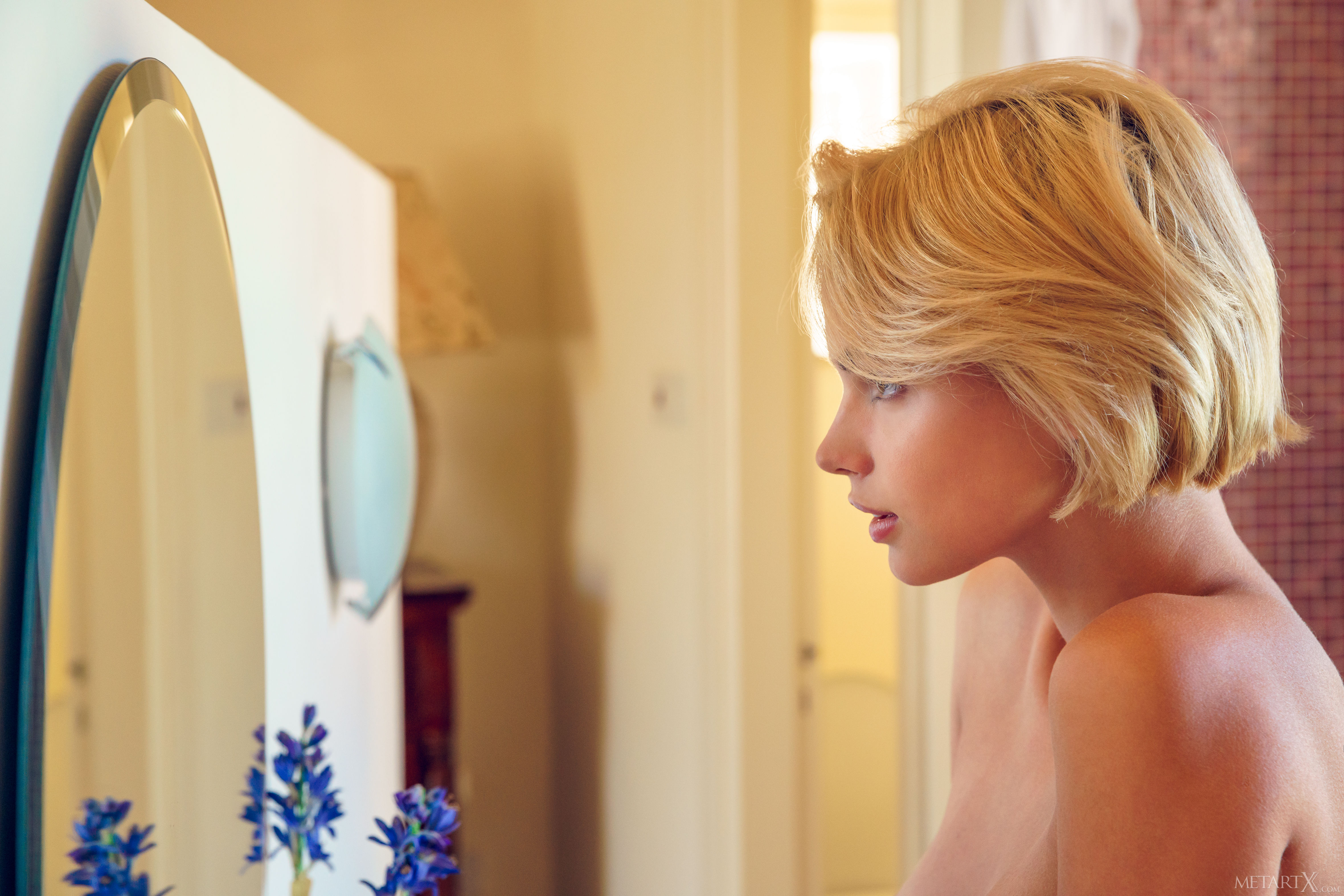 Join cute blonde Lilit A for her morning exercise routine. It doesn't need any clothing or equipment, just her fingers and her pretty pussy. Admiring her perky nipples in the bathroom mirror, the petite beauty strokes her clit until the powerful sensations make her shiver with pleasure. She bends over, her sexy ass up as she rides her fingers to an orgasm that's the perfect start to her day.