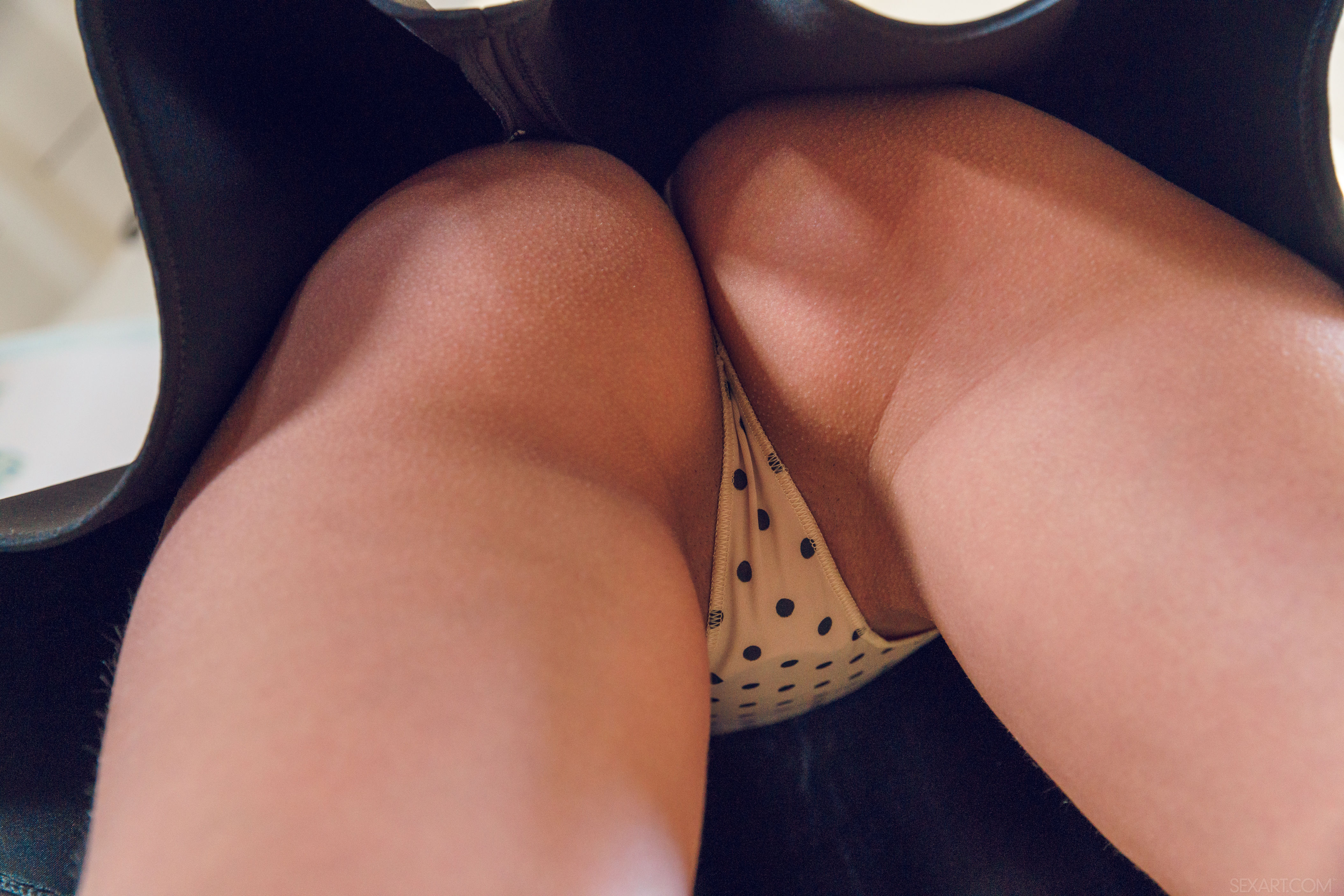 Gorgeous Lilit A looks super cute in a matching off the shoulder top and short skirt – and she immediately ups the sex factor when she tugs down the top to display her small breasts with their erect nipples, indicating how horny she’s feeling. The camera goes in for some glorious up skirt shots as the hot Ukrainian blonde pulls aside her polka dot panties and splays the flushed pink folds of her shaved pussy. She undresses slowly so you get a good look at every aspect of her perfect body, before sitting on some cushions with her legs spread wide, hugging her breasts and finger stimulating her pussy.