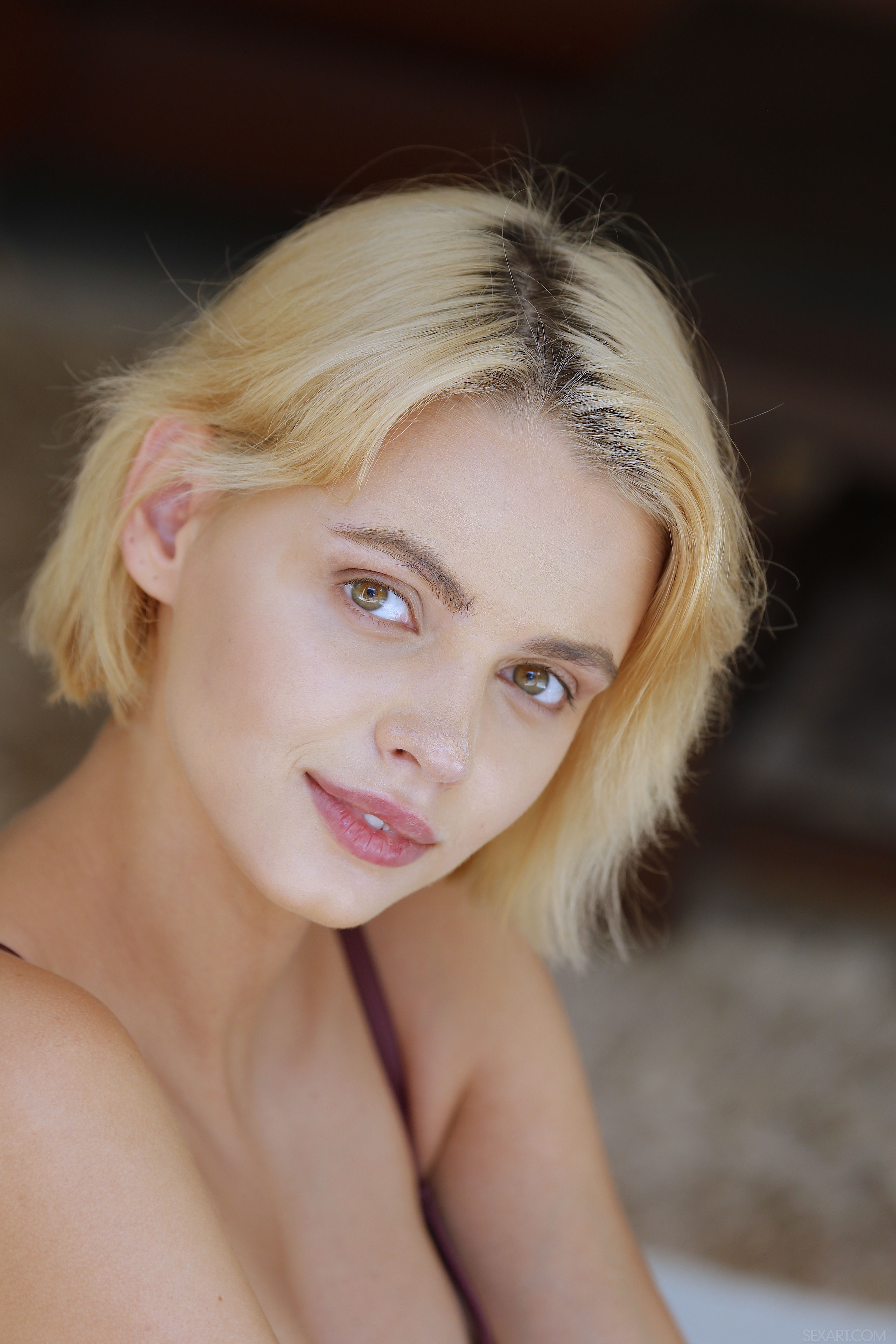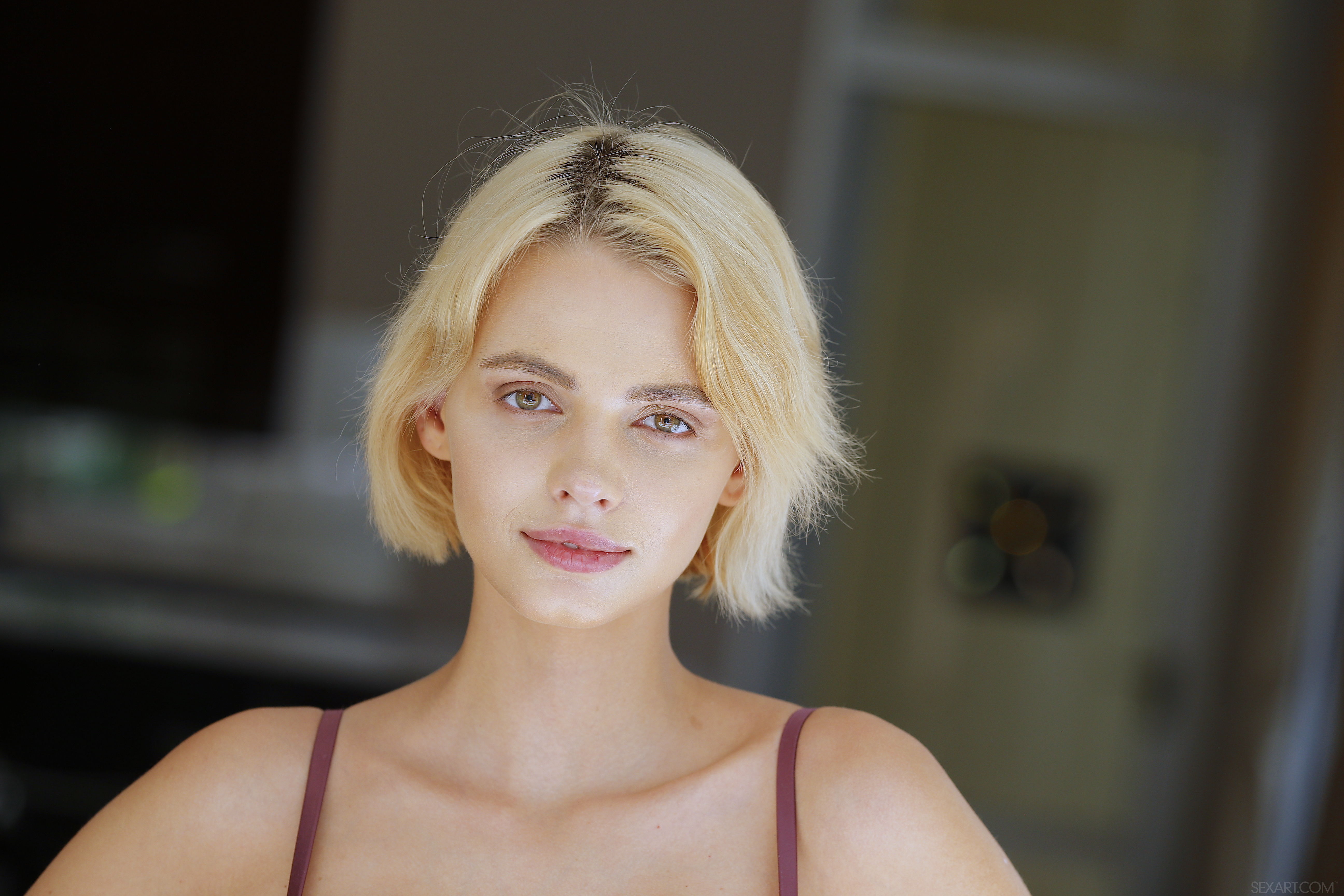 Gorgeous blonde Lilit A stands at the entrance to her patio in sexy lingerie with a seductive expression on her beautiful face. Feeling hot in every sense of the word, she wastes no time in removing the bra to expose her pert breasts. She pulls down her panties to flash her shaved pussy, and spins around to show off her firm ass, before bending forward and tugging on her cheeks, causing her pussy lips to spread apart. Once naked, she lies on the coffee table, caressing her perfect body all over, and finger-banging her hot, wet pussy.