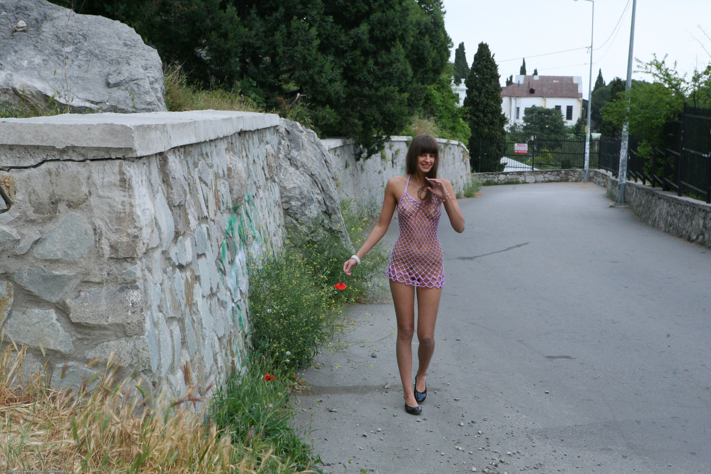 Sexy amateur Melena takes a walk outside and teases in her sheer top as she takes a pee on a trail in this watersports
