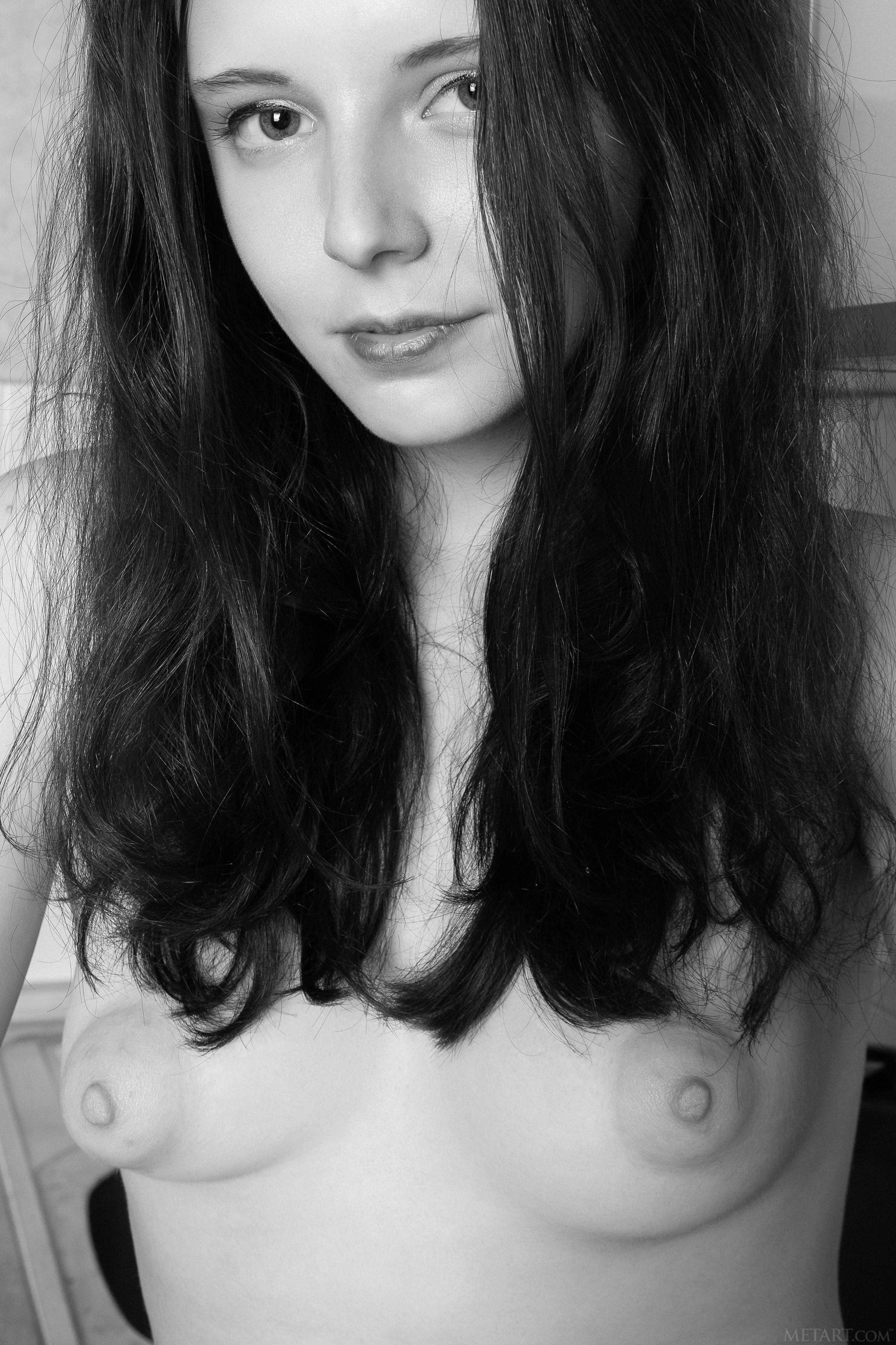 Belarusian newcomer Sienna models for the first time here at MetArt. And what a wonderful model she is. It's a subtle smile that plays across her red lips, a hint at what is to come. The brunette beauty sits in her chair and casually lifts her dress until it's around her waist. No panties and no pubic hair, she exposes her hot pink pussy and her smile widens. As she drops the straps of her dress from her shoulders, her pale pert breasts appear, puffy nipples wide and round, and now we know why she smiles. She raises a finger to her lips to quieten us all, then squats with legs open, arms beneath her curvy breasts. Absolutely stunning.